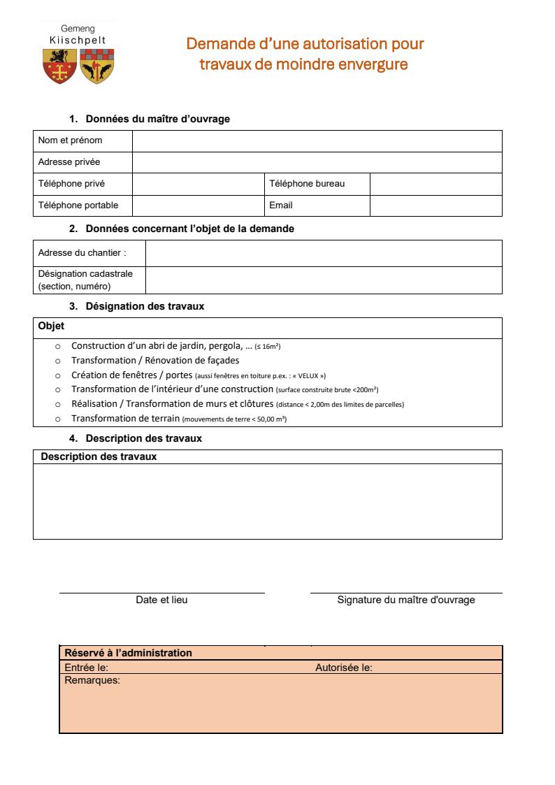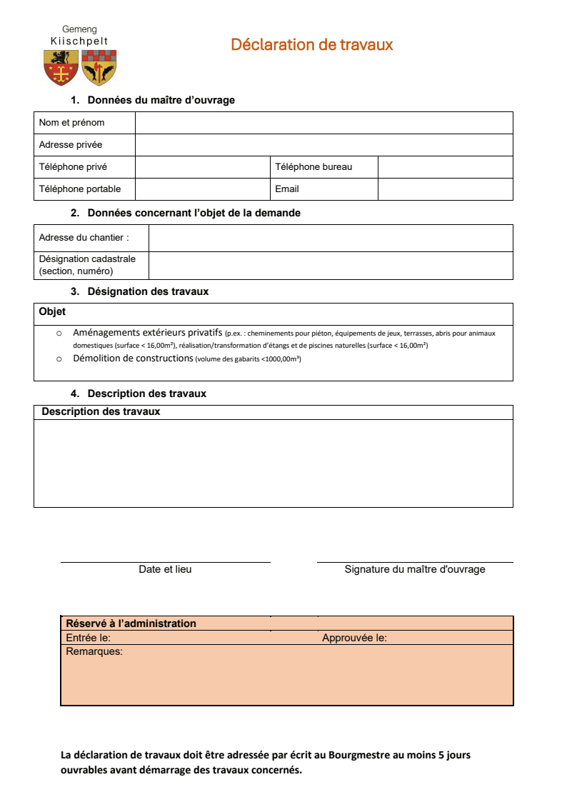 Merci de remplir le formulaire suivant et de l’envoyer avec les documents nécessaires à l’administration communale.