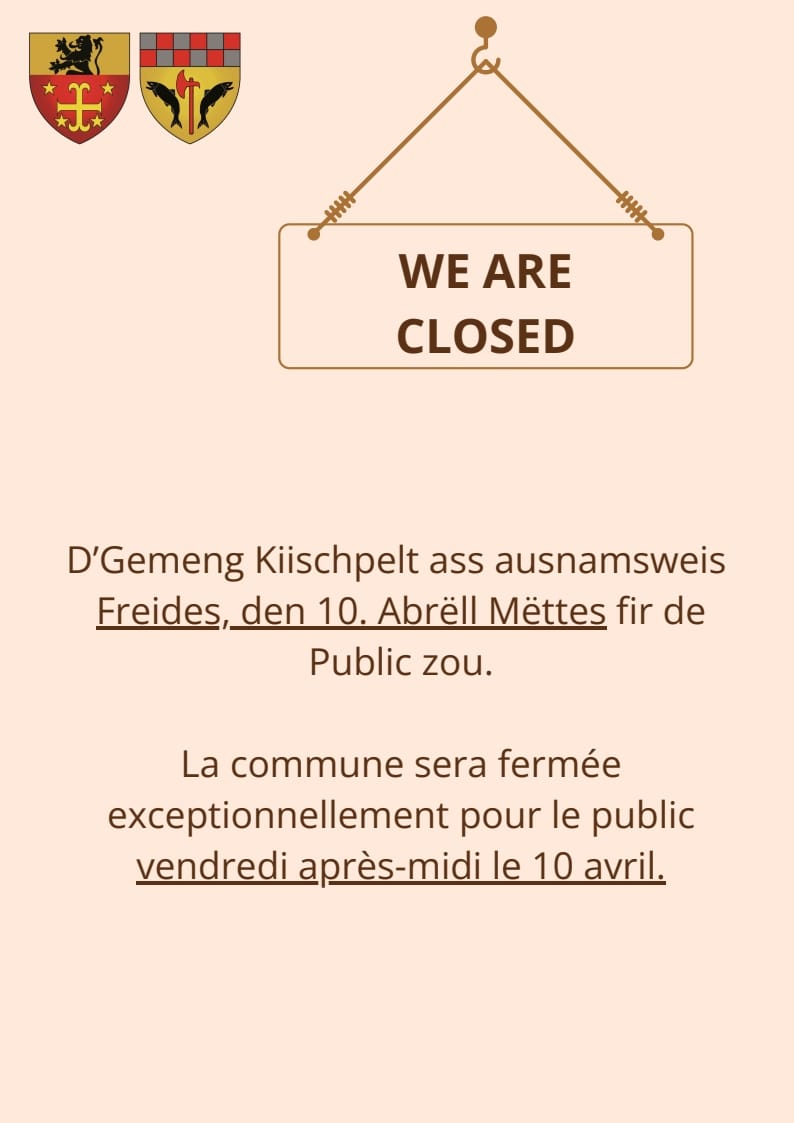 Gemeng ausnamsweis zou – fermeture exceptionnelle